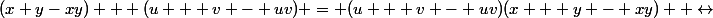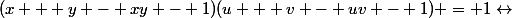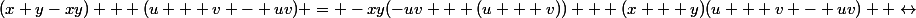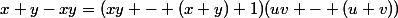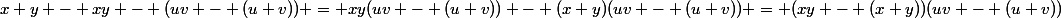 ) = xy(uv - (u+v)) - (x+y)(uv - (u+v)) = (xy - (x+y))(uv - (u+v)))