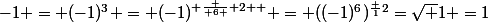 ^3 = (-1)^{ \frac { 6 }{ 2 } } = ((-1)^6)^{\frac {1}{2}}=\sqrt {1} =1)