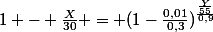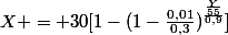 X = 30*(1-(1-(0,01/0,3))^((Y/55)/0,9))