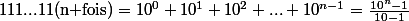 ce nombre est 1/9 de celui composé de n chiffres 9 qui est 1 de moins que 1 suivi de n zéros