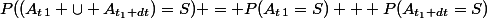 Seulement je ne maitrise pas exactement le déroulement du temps. Je sais juste que j'ai passé un temps t depuis le début du tirage et que j'ai passé un temps dt depuis le dernier test. Je cherche alors à savoir si l'événement A c'est produit depuis le dernier test (il y a dt secondes donc).