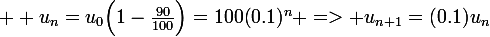 =100(0.1)^n => u_{n+1}=(0.1)u_n)