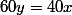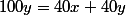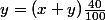 y=(x+y)*40/100 donne y=2x/3 ou 2x-3y=0 (2)