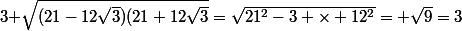 (21+12\sqrt{3}}=\sqrt{21^2-3 \times 12^2}= \sqrt{9}=3)
