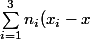 ^2 = n_1(x_1-x)^2 + n_2(x_2-x)^2 + n_3(x_3-x)^2)