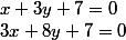 1°) Déterminer le point dintersection des droites (d2) : 2x + 3y + 7 = 0 et (d3) : 3x + 8y + 7 = 0.