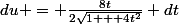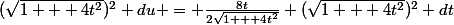 ^2 du = \frac{8t}{2\sqrt{1 + 4t^2}} (\sqrt{1 + 4t^2})^2 dt)