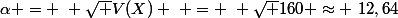 } ~ = ~ \sqrt {160} \approx ~12,64)