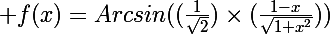 =Arcsin((\frac{1}{\sqrt{2}})\times(\frac{1-x}{\sqrt{1+x^2}})))