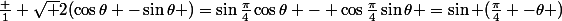 =\sin\frac{\pi}4\cos\theta - \cos\frac{\pi}4\sin\theta =\sin (\frac{\pi}4 -\theta ))