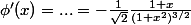 =...=-\frac{1}{\sqrt{2}}\frac{1+x}{(1+x^2)^{3/2}})