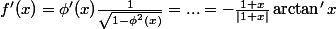 =\phi'(x)\frac{1}{\sqrt{1-\phi^2(x)}}=...=-\frac{1+x}{|1+x|}\arctan'x)