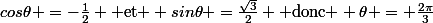 Et si tu divisais plutôt chaque équation par 2 ( la solution n'est-elle pas 2pi/3 ? ) .