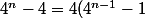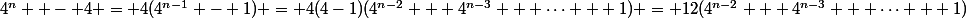= 4(4-1)(4^{n-2} + 4^{n-3} + \cdots + 1) = 12(4^{n-2} + 4^{n-3} + \cdots + 1))