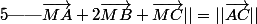 j'ai trouvé que MA + 2MB + MC = 4MG et que GA + 2GB + GC = 0 (vecteur nul)