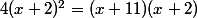 3- Un carré a a pour côté x+2, où x est un réel. Un rectangle a pour dimensions x+11 et x+2. Déterminer x afin que l'aire du rectangle soit égale à quatre fois celle du carré.