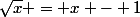 J'ai donc commencé en essayant de résoudre racine carrée de x = x - 1.