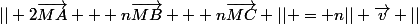 || 2MA + nMB + nMC || = n || v || (ce sont des vecteurs)