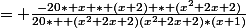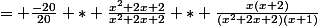 Etant une brèle dans le domaine de la factorisation, développement, etc, j'essaie de m'y entraîner (sait-on jamais, si la calculatrice serait interdite lors de l'épreuve du BAC!). Mais ce calcul : (-20x(x+2))/((x²+2x+2)²) * (x²+2x+2)/(20(x+1)) me donne vraiment du fil à retordre! :marteau: