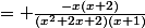 Dans mon corrigé, je n'ai que le résultat : (-x²(x+2))/((x+1)(x²+2x+2)) mais pas COMMENT y arriver... Et mon problème, c'est que je n'arrive pas à ce même résultat (en y aillant passé vraiment beaucoup de temps!). :doh:
