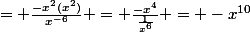 }{x^{-6}} = \frac{-x^4}{\frac{1}{x^6}} = -x^{10})