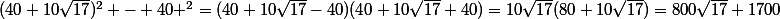 Je ne comprend pas comment on arrive à ce résultat. Ce que j'ai fait :/6 * (40²+10;)17² - 40²)