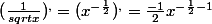 ^,=(x^{-\frac{1}{2}})^,=\frac{-1}{2}x^{-\frac{1}{2}-1})