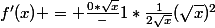 = \frac{0*\sqrt{x}}-{1*\frac{1}{2\sqrt{x}}}{(\sqrt{x})^2})