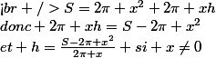 S/h = 2(pi x²) + 2x * pi ?? Mais là, je vois pas comment isoler h.