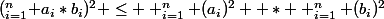 ^2 \leq \bigsum_{i=1}^{n} (a_i)^2 * \bigsum_{i=1}^{n} (b_i)^2)