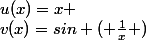 =x \\v(x)=sin ( \frac{1}{x} ))