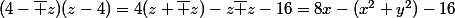 nous avons 2x - 8 / -(x²) + 8(2x) - 16 en ayant utilisé que z+z barre = 2x