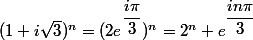 ^n=(2e^\dfrac{i\pi}{3}})^n=2^n e^\dfrac{in\pi}{3}})