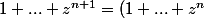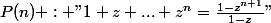 : "1+z+...+z^n=\frac{1-z^{n+1}}{1-z}")