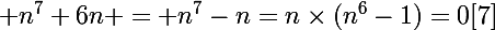 <--> n cong 0 mod(7) ou n^6+6n cong 0 mod(7)