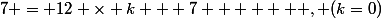 On peut dire que 7 congru à -5 modulo 12 mais r est comprit entre 0 et 11 donc on ajoute 12 ce qui nous fait