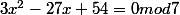 Or 3 x^2 - 27 x + 54=3(x-3)(x-6)=0 mod 7 + ce que j'ai dit ci-dessus permet de finir facilement .