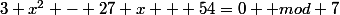 il y a aussi le calcul de 3x^2-27 x+54 mod 7 pour
