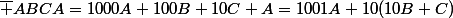 2. A partir de N = ABCA, on définit y = 11A + B +10C.