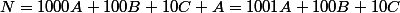 1. A parti de N = ABCA , on définit x= 3B + C.