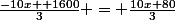 (-10x +1600)/3=(10x+80)/3