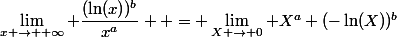 )^b}{x^a} = \lim\limits_{X \rightarrow 0} X^a (-\ln(X))^b})