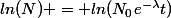 t=1/lambda ln(No/N) car le - passe en puissance dans le logarithme.