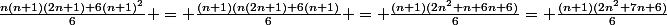 (2n+1)+6(n+1)^2}{6} = \frac{(n+1)(n(2n+1)+6(n+1)}{6} = \frac{(n+1)(2n^2+n+6n+6)}{6}= \frac{(n+1)(2n^2+7n+6)}{6})
