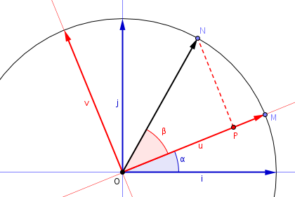 \vec{u}\!\!+\!\sin(\beta)\vec{v}=\cos(\beta)\Big(\cos(\alpha)\vec{i}\!\!+\sin(\alpha)\vec{j}\Big)+\sin(\beta)\Big(\cos(\alpha\!+\!\frac{\pi}{2}))\vec{i}\!\!+\sin(\alpha\!+\!\frac{\pi}{2})\vec{j}\Big))