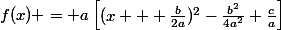 = ax^{2} + b x + c = a \begin{bmatrix}(x+\frac{b}{2a} )^{2} - \frac{b^{2}}{4a^{2}} + \frac{c}{a}\end{bmatrix})