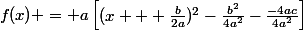 = a\begin{bmatrix}(x + \frac{b}{2a})^{2}-\frac{b^{2}}{4a^{2}}+\frac{c}{a}\end{bmatrix})