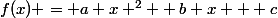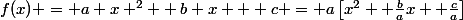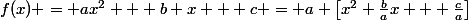 = a x ^{2}+ b x + c = a\begin{bmatrix}x^{2}+ \frac{b}{a}x +\frac{c}{a}\end{bmatrix})