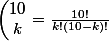 C(10,10-k) lenombbre de tirages de 10-k boules blanches parmi 10
