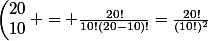 En faisant la somme pour tous les k possibles j'obtiens tous les tirages de 10 boules quelconques parmi 20